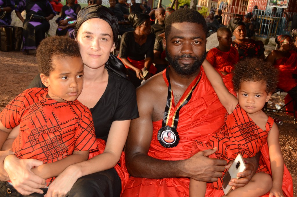 Die Zeremonie auf dem Dorfplatz ging auch schon bald dem Ende zu. Bald findet das Begräbnis statt. Ich entschied mich, den Kindern und auch mir selbst wieder eine Pause zu gönnen und ging nicht zum Begräbnis. Denn es war Mittagszeit und Skyah sollte zu einem langen Schlaf kommen. Sie fühlte sich nämlich immer noch fiebrig an. Also machte ich mich zurück ins Haus und wir assen noch ein bisschen Brot mit Konfi sowie Wassermelonen. Silas mag das Essen, welches hier zubereitet wird, nicht wirklich und Skyah hatte keinen grossen Appetit. Auch ich hatte nicht sonderlich Appetit, denn irgendwie fühlte ich mich ein bisschen schwach. Also legte ich mich zusammen mit den Kindern hin. Wir alle waren wirklich müde, weshalb wir auch schnell einschliefen. Als wir dann erwachten kam wenig Zeit später auch bereits Isaac ins Zimmer. Da meinte er: „Wir sollten uns jetzt umziehen, denn nach dem Begräbnis solltest du nun dein schwarzes Kleid mit dem roten Tuch rundum tragen.“ Also zog ich mich um und Isaac ging zum Familienhaus, denn sein rotes Gewand/Tuch war bei seiner Mutter im Zimmer.