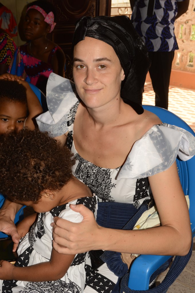 Zurück im Haus versuchte ich mich ein wenig hinzulegen, um mich zu erholen. Ich spürte wie mein Körper nach Erholung schrie und ich konnte/wollte es ihm einfach nicht geben. Also nahm ich noch einmal eine Portion der Ibutropfen, damit ich für den Nachmittag wieder genug Kraft hatte, um mich unter die Trauergesellschaft zu mischen. Jetzt wenn ich das im Nachhinein so reflektiere, merke ich, wie ich meinen eigenen Prinzipien fremdging, nur damit man nicht über mich redete. Als ich dann mit den Kindern wieder zum Platz lief, war es ziemlich genau wie am Samstag. Die Gäste sassen um den Dorfplatz, die Familie tanzte immer wieder zur Live-Musik und zwischendurch rief Akwa ins Mikrofon, wer gerade Geld an die Beerdigung gespendet hat und von wem sie zur Beerdigung eingeladen wurden. Zwischendurch erwähnte sie immer wieder meinen Name, obwohl niemand meinetwegen zur Beerdigung kam. Isaac, Joana, Christian und ich mussten lachen. Akwa meinte es gut mit mir und wollte nicht, dass ich nie erwähnt wurde. Also änderte sie manchmal die Namen auf dem Schein, welcher bei der Geldspende abgegeben wurde. Das zeigt wieder, was für eine herzliche Frau Akwa ist, ihre Begegnung am One Week (hier kannst du den Artikel nachlesen) berührte mich damals schon sehr.