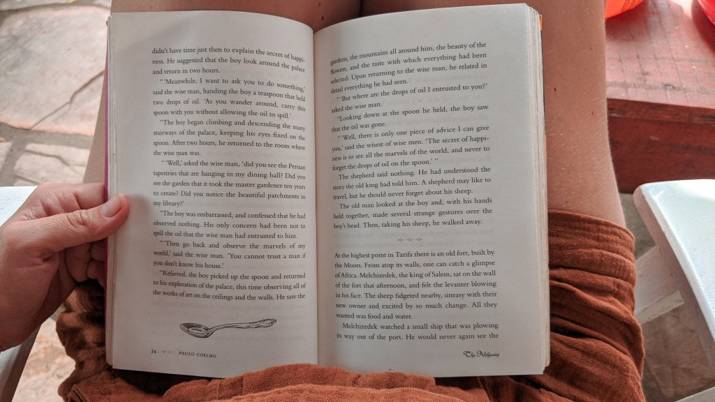 Ich erzählte ihr davon, dass ich meine Reise frühzeitig abbrechen werde, weil ich merkte, dass meine Reise nun in der Schweiz weitergehen wird und Isaac’s Reise hier in Ghana. Dass ich nach 13 Jahren endlich wieder für drei Monate in meiner Heimatstadt leben und dort die nötige Unterstützung für die Kinder haben werde, um jetzt meiner Bestimmung nachzugehen. Die Kinder werden an diesen Tagen gut versorgt sein und ich kann mich meinem beruflichen Weg wieder mehr widmen. Herausfinden was ich denn wirklich machen will. Da fragte sie mich, was mich im Leben denn begeistert und ich antwortete: „Fotografie und Geschichten von Menschen. Ich wollte lange immer Fotografin werden, aber dies sei geldtechnisch doch eher riskant und nicht immer profitabel. Dass ich zwar Reichtum nicht mit Geld definiere, jedoch gerne finanziell sicher dastehe, da ich dann weniger Angst habe. Weniger gestresst bin, da ich ja genügend Geld auf der Seite habe, falls mal eine grössere Rechnung kommt.“ Da schmunzelte sie und fragte mich: „Kennst du das Buch „Der Alchimist“? Mein Herz schlug gleich höher: „Jaaa, sicher“, erwiderte ich, „das ist mein absolutes Lieblingsbuch.“ „Ich glaube du solltest es bald wieder einmal lesen. Das Buch wird dir auf deinem Weg helfen. Gestern habe ich das Buch das zweite Mal fertig gelesen und ich habe vom ersten Mal so vieles vergessen.“ meinte sie, „und weisst du was? Ich möchte es dir schenken, ich habe das Gefühl, dass das ein Buch ist, welches reisen soll.“ Was für eine tolle Idee, wer das Buch „Der Alchimist“ gelesen hat, wird verstehen, weshalb diese Idee so toll ist. Im Allgemeinen gibt es bestimmt einige Bücher, die reisen und nicht irgendwo im Büchergestell verstauben sollten.