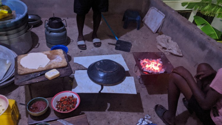 Meine letzte Woche in Ghana war auch die letzte Woche vom Jahr 2021. Denn unser Flug in Richtung Amsterdam war bereits am 31.12.2021 und wir verbrachten Neujahr im Flugzeug. Ein Erlebnis für sich, hierzu aber später. In der letzten Woche erlebten wir praktisch jeden Tag etwas „einzigartiges“. Zum Beispiel löste ich endlich mein Versprechen ein und bereitete selbstgemachte Pizza zu und wieder hatten wir viel zu lachen. Denn es wäre nicht Ghana, wenn alles nach Plan laufen würde. Das Experiment Pizzastein auf dem Coalpot scheiterte mehr oder weniger (siehe Bild). Die Pizza war dennoch gut. Dann liessen wir Feuerwerke knallen und es war lustig mit anzusehen wie die Erwachsenen fast mehr Freude hatten als die Kids. Ein Abend bleibt mir besonders gut in Erinnerung, als wir nach dem Abendmahl unsere Hüfte manche mehr ich eher weniger im Rhythmus schwingten. Die Stimmung war so unbeschwert und ich liebe unbeschwerte Momente, wo man sein Lachen nicht mehr aus dem Gesicht kriegt.